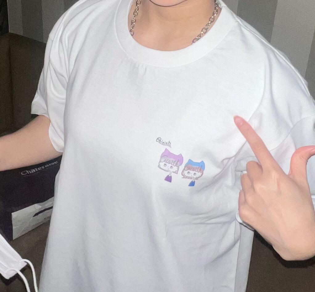 ホワイトカラーで親しみやすく、胸にワンポイントカジュアルスタイルにぴったりの一枚。